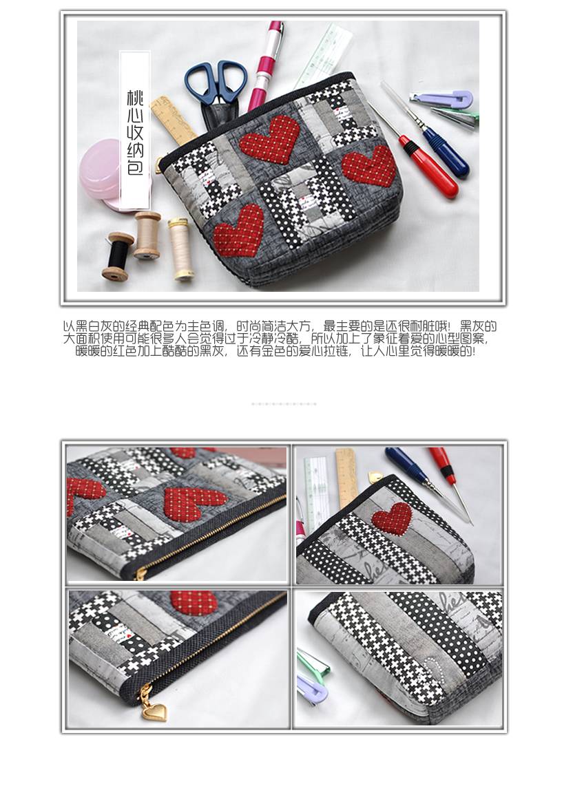 学习手缝拼布制作桃心收纳包