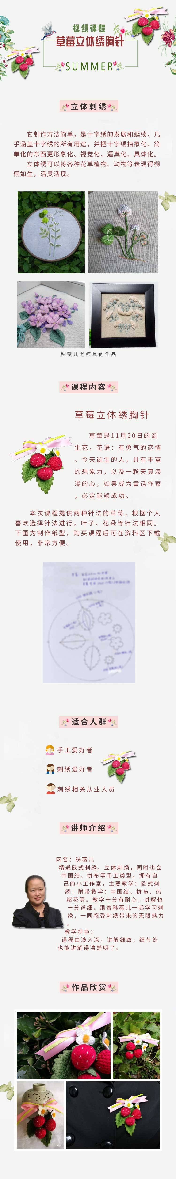 【视频】夏日果实草莓立体绣胸针
