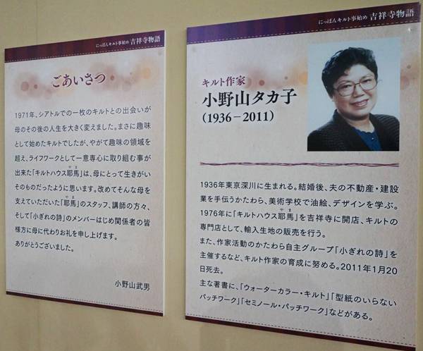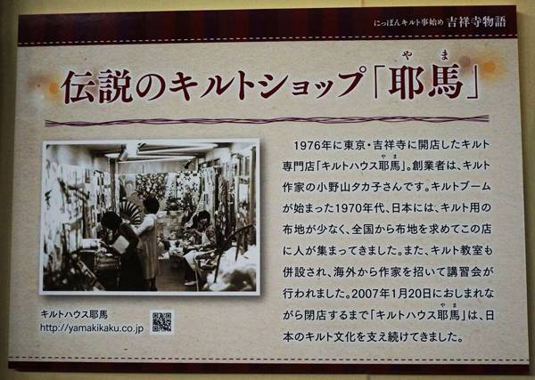 在吉祥寺的“耶马”(Yama),是由小野山タカ子(konoyama takako)主持的,为日本的拼布文化奠定了基础。
