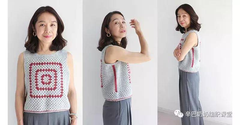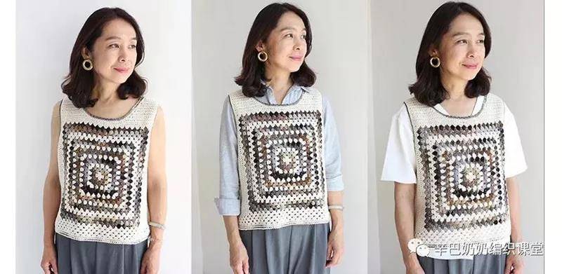 这背心和上面是同款。但线材不同,配色不同。上课时,大家都可以试穿。