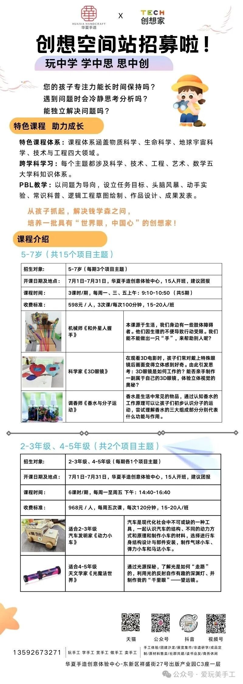 招募‖华夏手造创想空间站暑期班,开始报名啦!