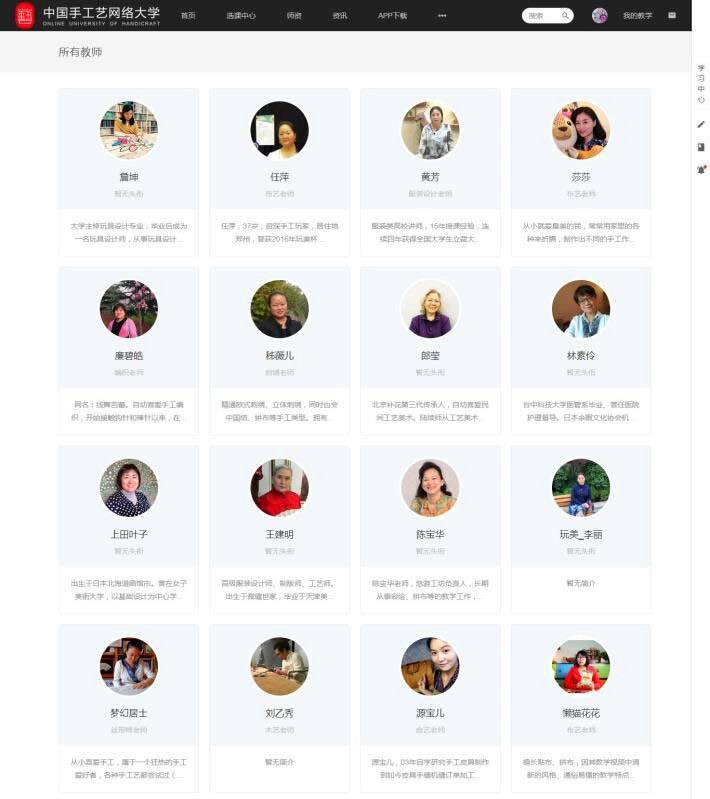 在这里,可以不受时间、地域限制、低成本的、用多种终端学习到自己感兴趣的、丰富而专业的手工艺在线课程,接受最新、最流行的技法,能跟随自己喜欢的、一流的老师去学习和互动,能得到一流老师的在线答疑和作业点评。